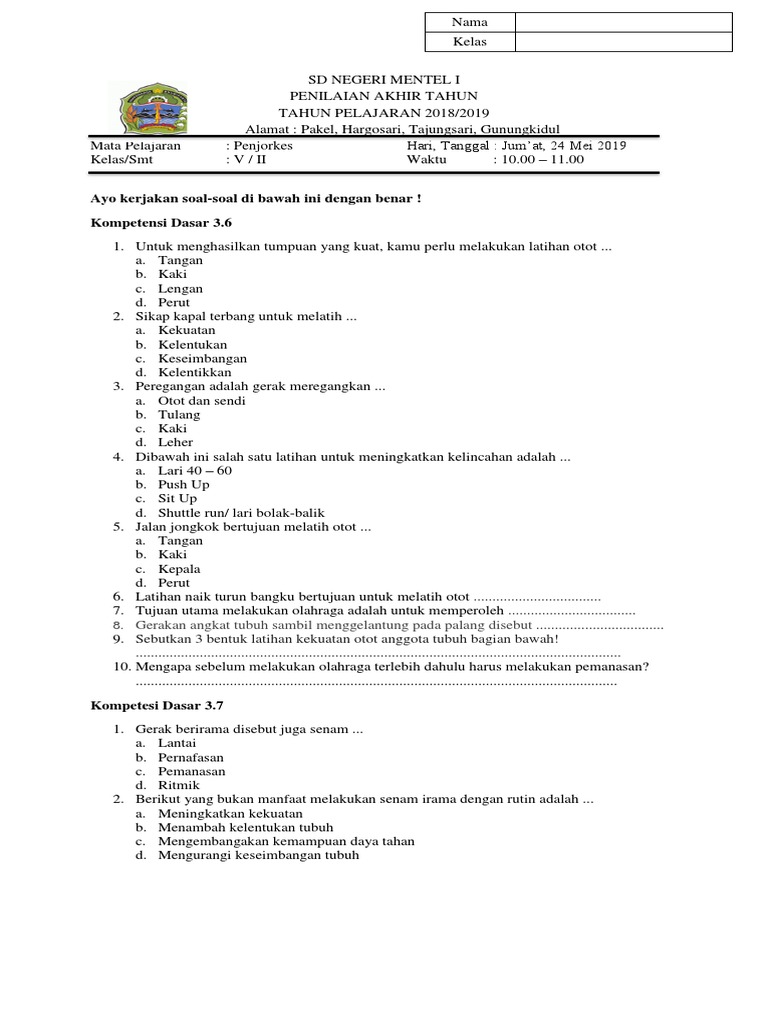 Soal Penjaskes Kelas 5 Semester 1 Dan Kunci Jawaban 2018 - Soal Ukk Dan Kunci Jawaban Pjok Kls 5 Jawabanku Id : Berikut ini adalah contoh soal latihan mata pelajaran pkn kelas 6 semester 1 yang bisa latihan soal bahasa inggris kelas 5 semester 2.