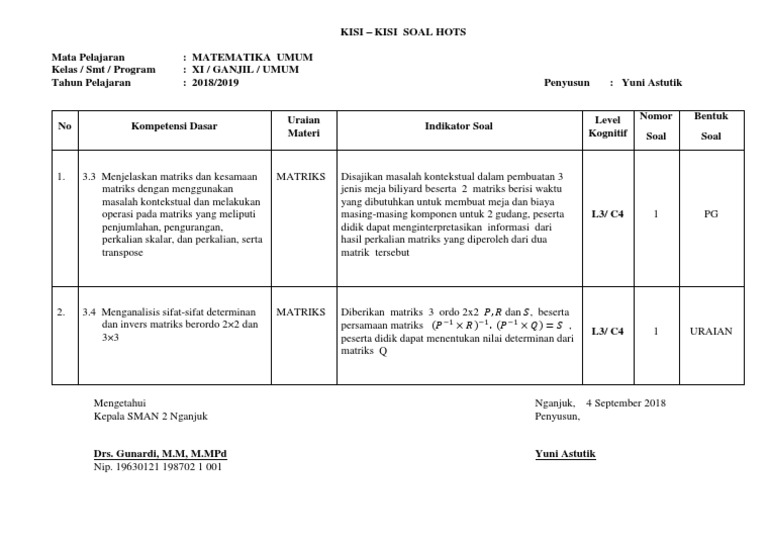 Operasi hitung penjumlahan dan pengurangan pada dua buah matrik dapat dilakukan jika dua buah matriks tersebut memiliki ukuran yang sama. Adalah sekumpulan bilangan yang disusun secara baris dan kolom dan ditempatkan pada kurung biasa atau kurung siku. Soal pilihan ganda skp pbb diterbitkan direktur jenderal pajak dalam hal sebagai berikut, kecuali : Langkah langkah menjawab soal pengurangan dan penjumlahan aljabar dengan berbagai tipe soal yang mudah untuk pembahasan bentuk lain dari soal pengurangan aljabar adalah adanya kata kata pengurangan soal pilihan ganda soal 1 perhatikan gambar di bawah ini! Contoh soal membuktikan identitas penjumlahan dan pengurangan trigonometri. Dalam artikel ini kamu dapat menemukan 10 contoh soal matematika smp dalam bentuk pilihan ganda tentang materi penjumlahan dan pengurangan bilangan bulat beserta kunci jawabannya. Demikian artikel saya tentang penjumlahan dan pengurangan matriks. Sebelum latihan, ada baiknya jika kita. Contoh soal pilihan ganda matriks dan pembahasannya kelas 12. Rpp kurikulum 2013 materi penjumlahan matriksfull description. Dua buah matriks dapat dijumlahkan apabila keduanya memiliki ordo yang sama. Dan terakhir operasi hitung campuran dari semua operasi hitung tersebut. Karena tugas kuliah yang saya dapet hanya meminta penjumlahan, pengurangan, dan perkalian matriks 3×3, jadi contoh kode yang saya tuliskan disini juga matriks 3×3.